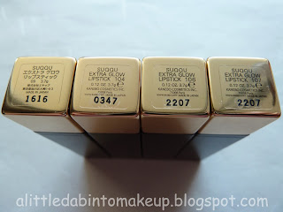 Had a moment the other day when it was well-lit and sunny outside, so I went back to take some comparison photos for the below new additions of Suqqu Extra Glow Lipsticks.